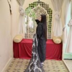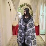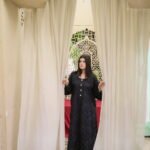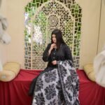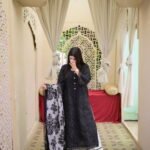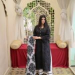 The look is completed with a white organza dupatta, adorned with full black embroidery and finished with lace on all four sides, adding a graceful and sophisticated touch to the ensemble.